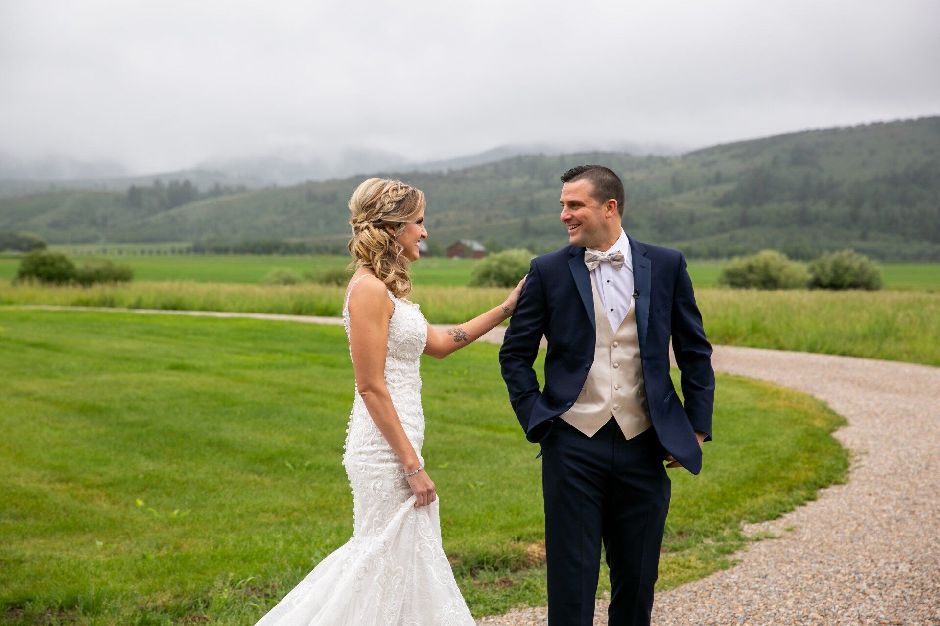On June 29, Megan and Peter promised forever to one another in their beautiful mountain ceremony. Only seventeen people attended the wedding, and everyone stayed in one large rental house in the mountain valley. Guests got to see moose and other wildlife in the backyard. The background created an environment that was easygoing and flexible. “I didn’t pay a lot of attention to the small details,” Megan said. “That really allowed me to just enjoy the day and live in the moment.” A string duo provided music for the ceremony. At the pronouncement of marriage, horses were let loose and ran behind the couple. Although Megan’s son had insisted during planning that he wouldn’t dance with his mother at the reception, he asked to share a dance with her in the moment. “That was a really touching [experience]. . . Dancing with our kids at the wedding was really neat because we had our children celebrating with us!” Megan explained.