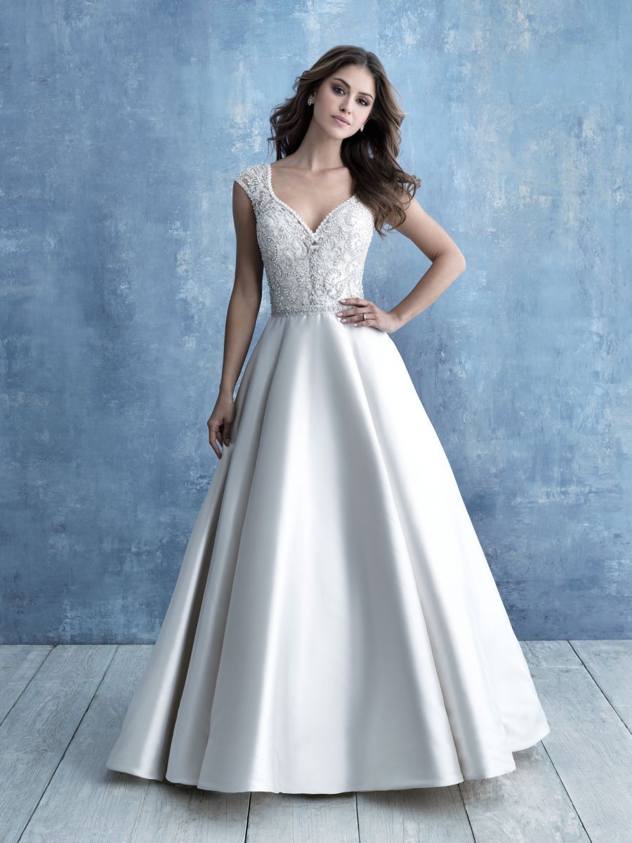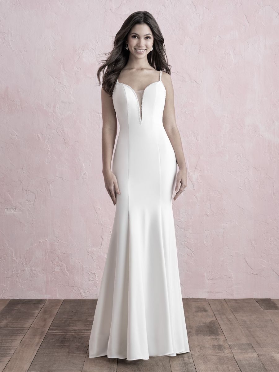 Haleigh found Allure gown 3268 online and ordered a loan sample through Clarice's. We brought the gown into our store for Haleigh to try on, and she fell in love with it! The neckline was rimmed with beading, however, and Haleigh wanted an understated gown without any glitz. Haleigh explained, "The dress that I picked was perfect, except the beading just wasn’t for me. I visualized my dress being very simple with no beading or lace." She ordered her gown with a customized neckline without beading and found the slight change made a positive difference to her look. "Visualize your perfect dress," Haleigh advised, "and imagine you can customize it almost any way you can!"