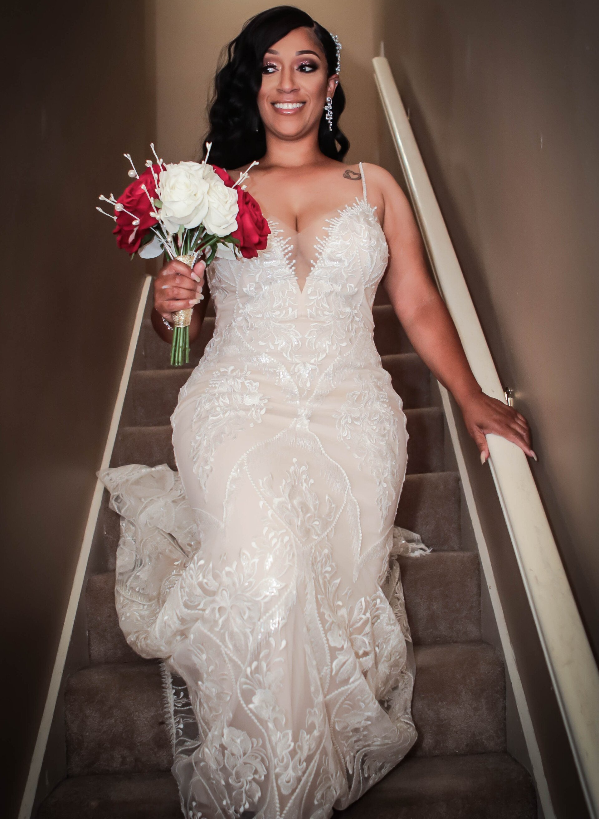 Rebecca’s gown ended up working perfectly in their backyard wedding. The ceremony was intimate, with the couple surrounded just by immediate family and a handful of friends. When asked about special moments that stood out to her, Rebecca responded, “To walk about and see our vision. It wasn’t something a venue set up. It was something we did and something we will enjoy for however long we live [at that house].” Making the ceremony even more unique was the officiant. Curtis’ eldest son officiated the marriage! “We didn’t have a wedding party. My son walked me down the aisle, and Curtis’ sons were his groomsmen. His oldest was our officiant,” Rebecca said in regards to the small group. The day was a celebration of their relationship with those close to the couple, and one cannot help but believe in the power of love when they see these two. “Marriage was not ‘doomsday’ for us. Yeah, those past marriages didn’t work, but this one will. Even though I had the dream wedding already, I had the dream wedding this time because it was for us!” Rebecca exclaimed. She continued, “Don’t give up on love! Go into a marriage with an open heart, [and don’t] focus on past hurts or failures. . . Go into it to being optimistic about love and staring over again. Love truly exists. No matter what age or time period, you can still find love, and it can be everlasting.” Congratulations on an everlasting love to Rebecca and Curtis!